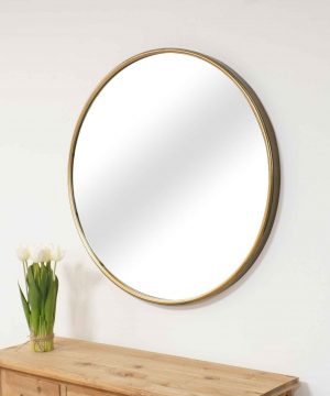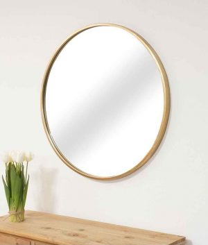 מראה עגולה חלקה בצבע זהב