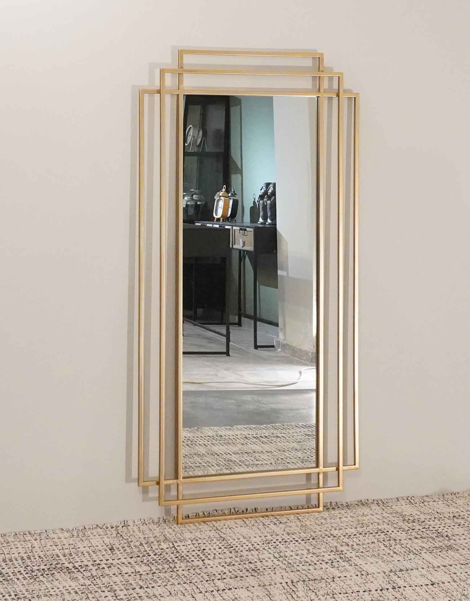 מראה מעוצבת ממוסגרת מלבנים מוזהבים
