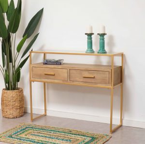 ניו יורק – קונזולה בצבע זהב עם שתי מגירות