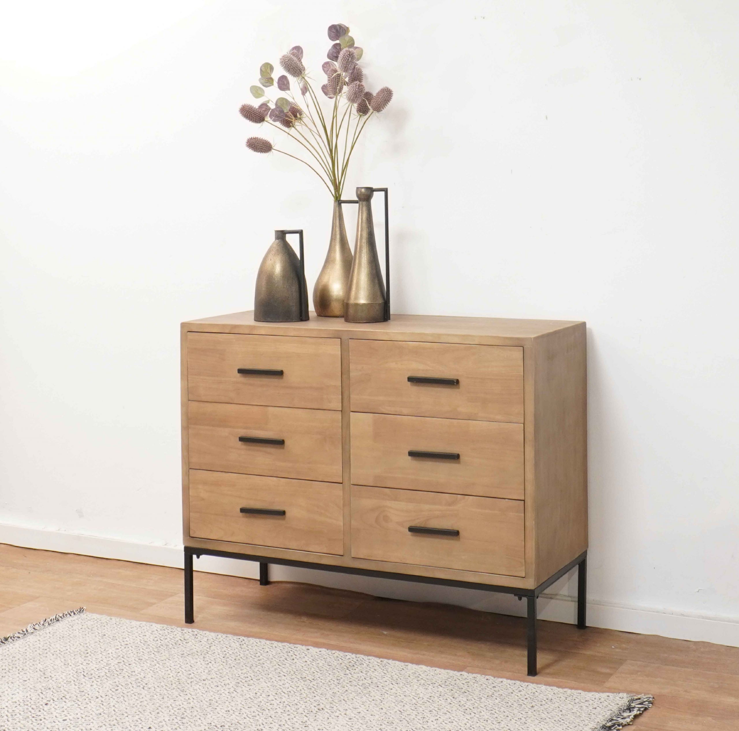 הקומודה עשויה מעץ מלא בשילוב רגליים וידיות ממתכת מושחרת.
